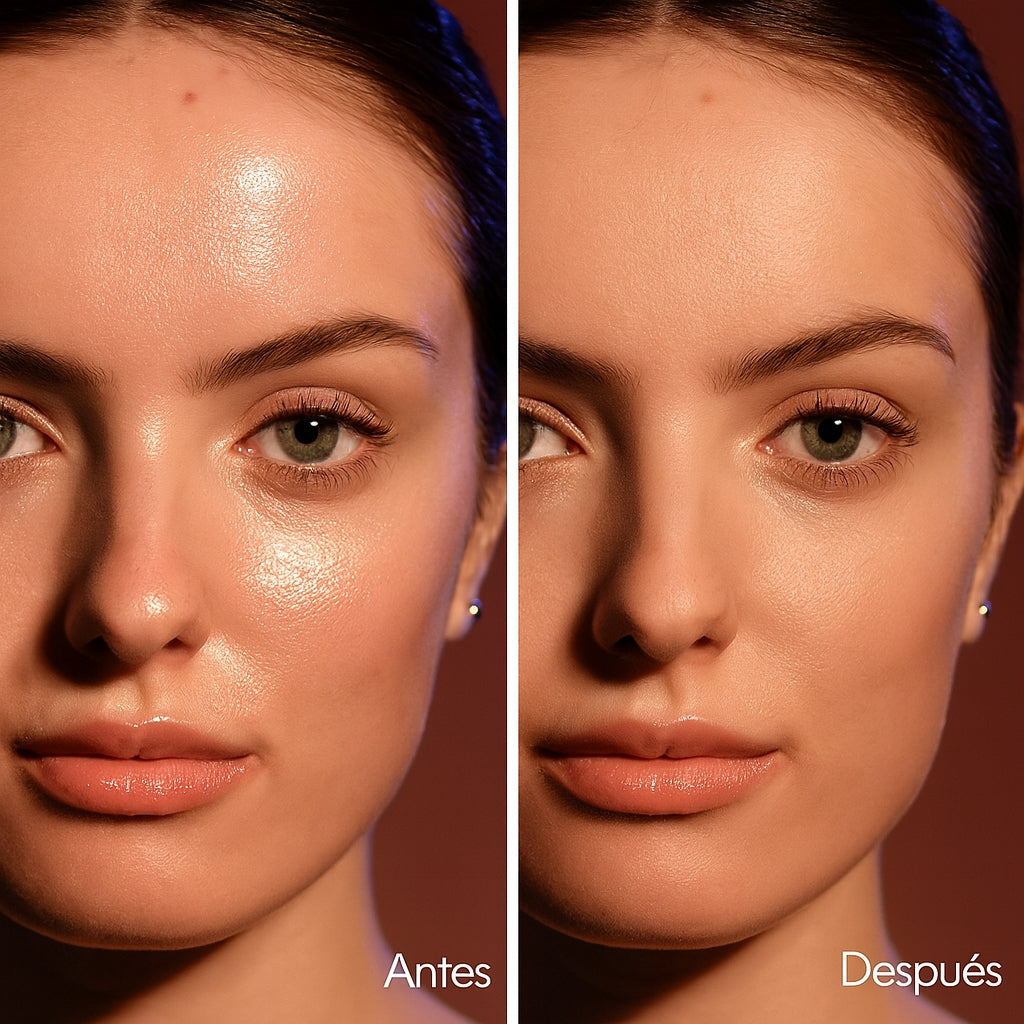 ✅ Elimina el exceso de grasa y brillo facial en segundos.